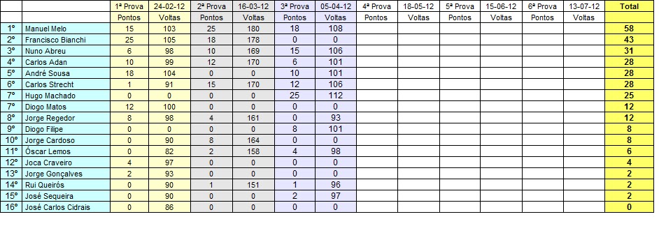 A 4 voltas no 6º lugar ficou a equipa Absolute Beginners com Márcio Teixeira e Luis Faria que desta vez não conseguiram repetir o brilharete da primeira prova em que se classificaram em 3º lugar.